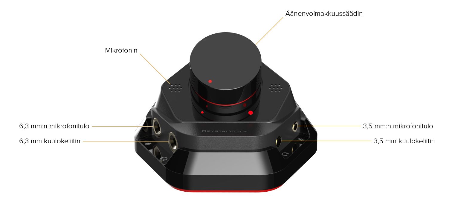 Hallitse helposti ACM-moduulia, joka on sisäänrakennettu mikrofonijärjestelmään, 6,3 mm:n ja 3,5 mm:n liittimillä mikrofonin ja kuulokkeiden tulo- ja lähtöliitäntöihin. Voit säätää äänenvoimakkuutta kätevästi ACM-säädinnupin avulla - kaikki sormiesi ulottuvilla.