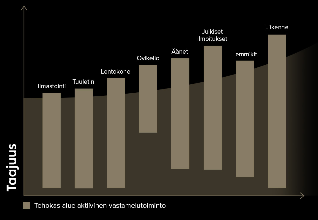 Kuulokkeen sisälle sijoitettu mikrofoni säätelee, mitä käyttäjä oikeasti kuulee, jotta vastameluteknologia voi vastata ja korjata signaalit sen mukaisesti