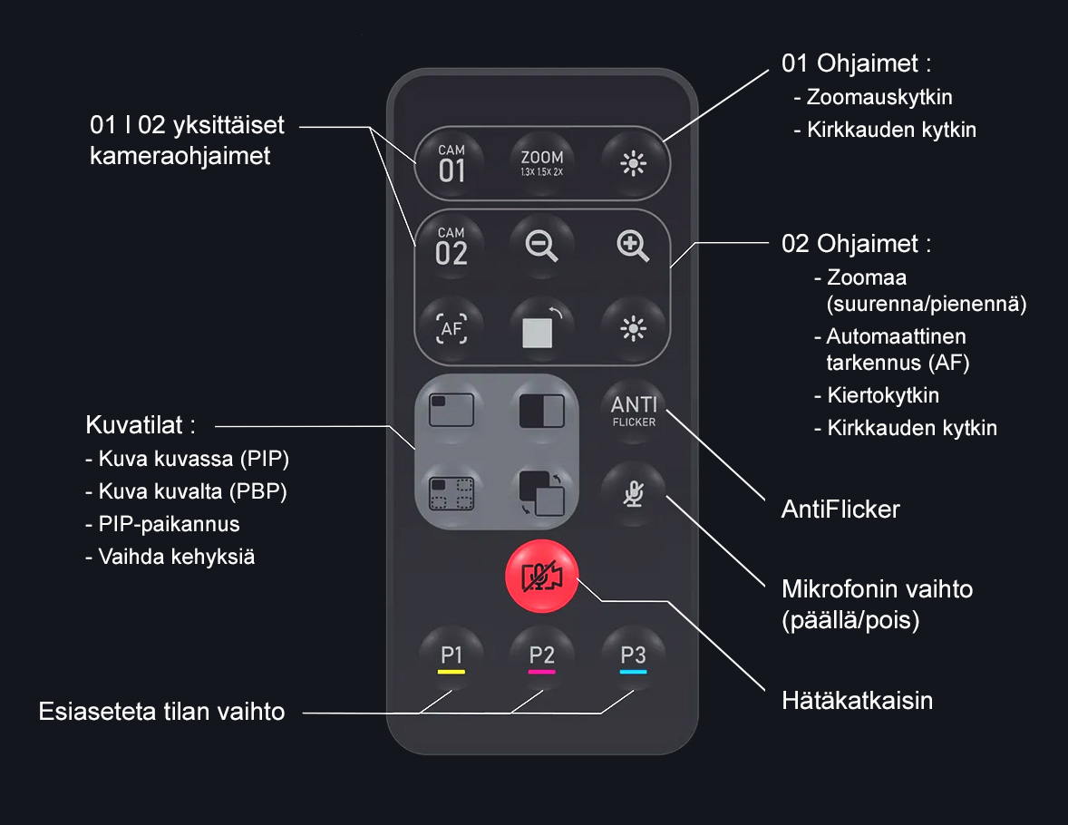 Yhdistämällä kahden kameran tehon ja intuitiivisesti suunnitellun IP-kaukosäätimemme voit nyt vaihtaa saumattomasti kamerakulmasta toiseen napin painalluksella. Tämä ominaisuus on erityisen kätevä sisällöntuottajille, jotka haluavat tarjota dynaamisemman ja ammattimaisemman katselukokemuksen seuraajilleen. Se on myös erityisen hyödyllinen sisällöntuottajille, jotka isännöivät suoria tapahtumia, kuten pelistriimejä, live-haastatteluja tai live-myyntiohjelmia.